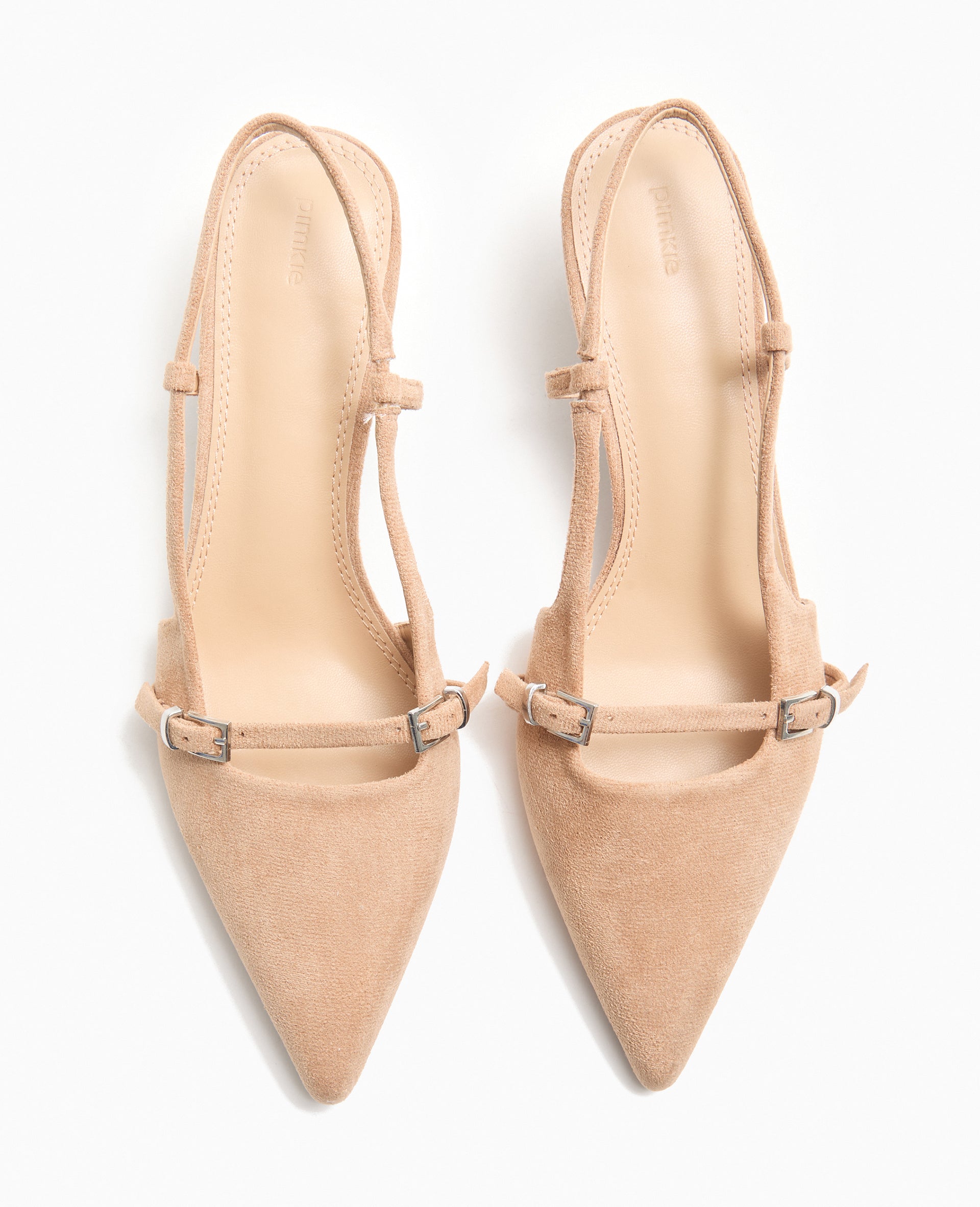 - Escarpins beiges en suédine.