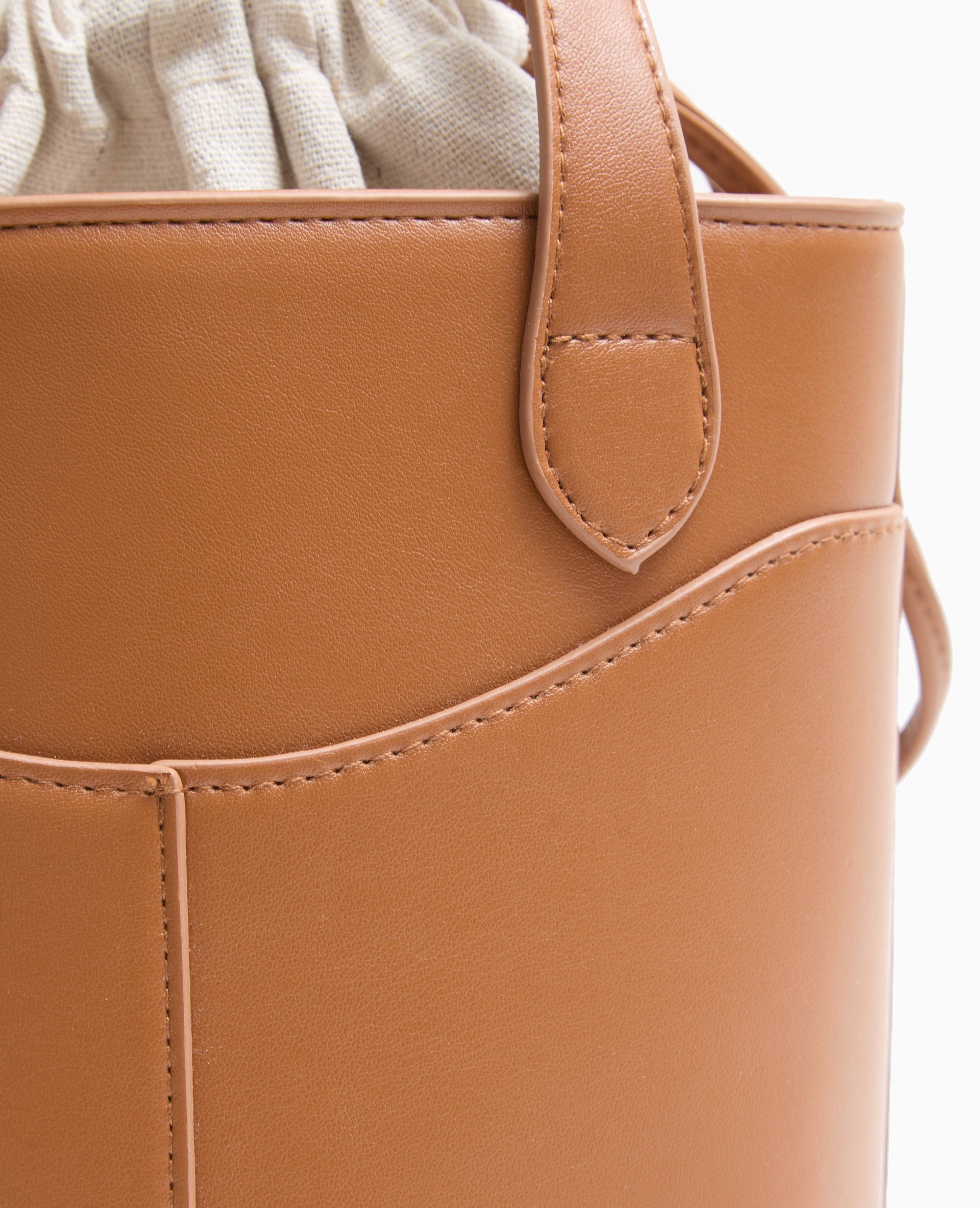 - Sac seau camel en matière synthétique effet cuir lisse.