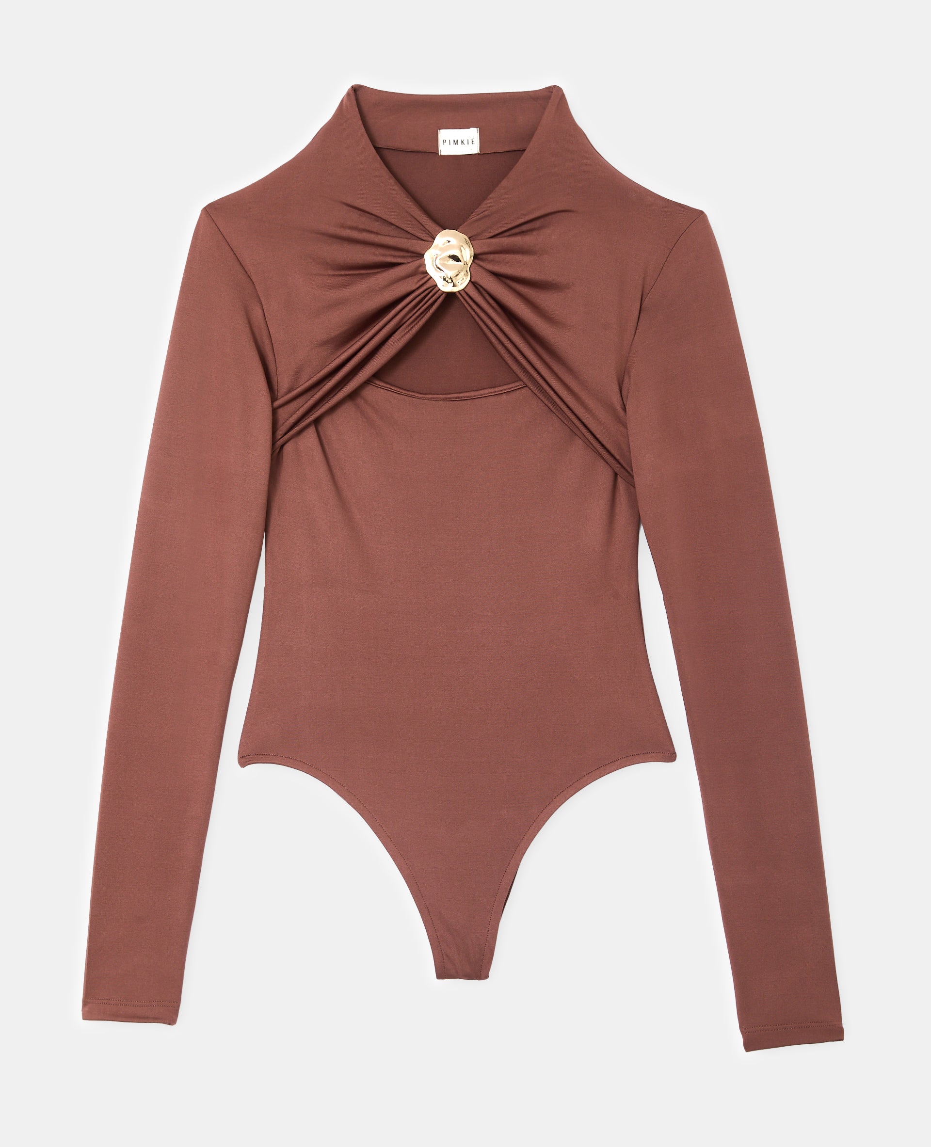 - Body marron en maille extensible.