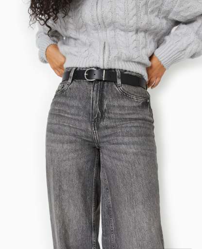 - Ceinture en matière synthétique effet cuir lisse noir.