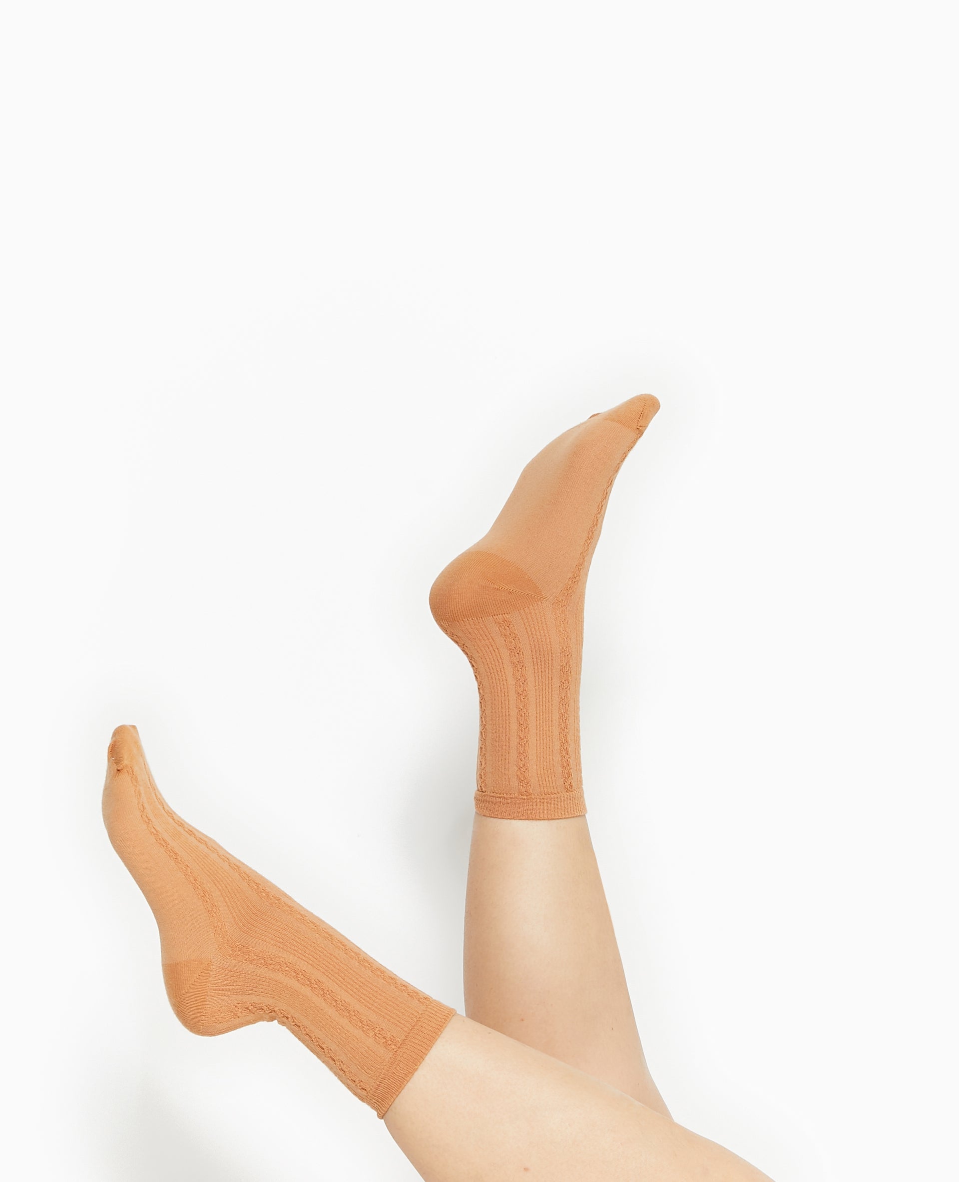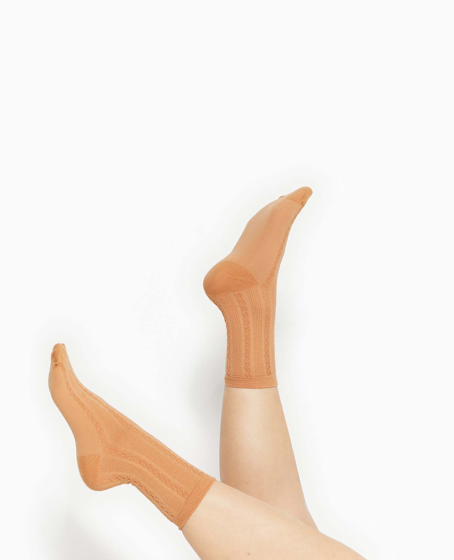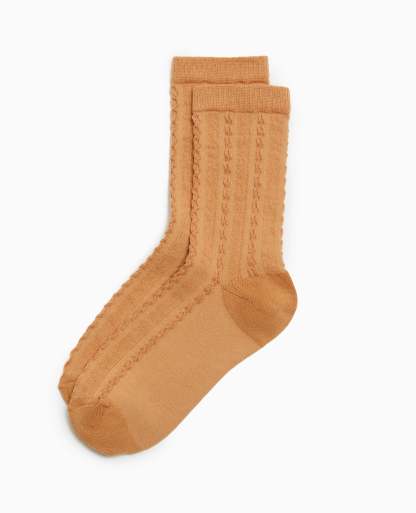 - Paire de chaussettes camel en maille fantaisie.