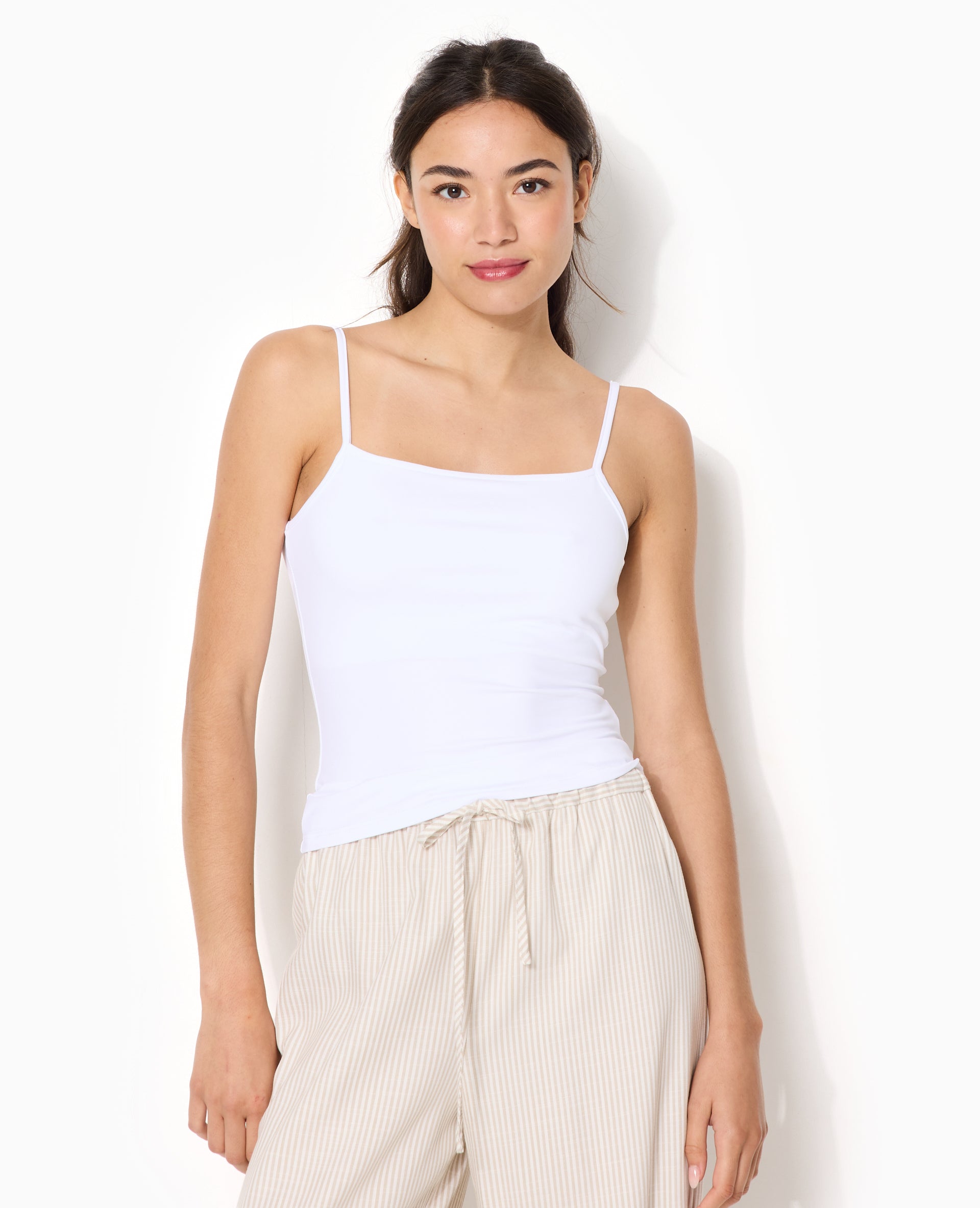 - Débardeur ajusté en maille extensible blanche.