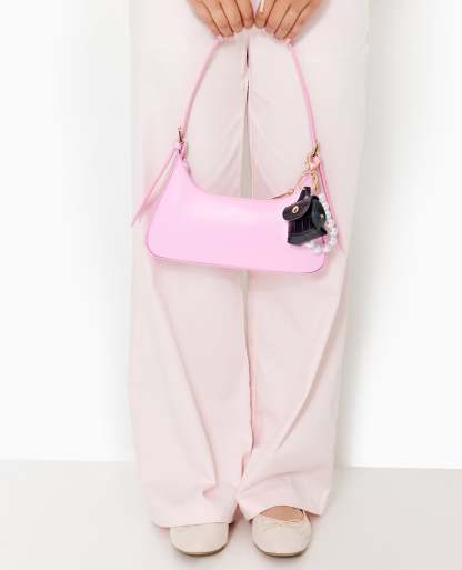 - Déco de sac comprenant un bracelet en grosses perles irisée + 1 mini-sac en matière synthétique effet croco noir.