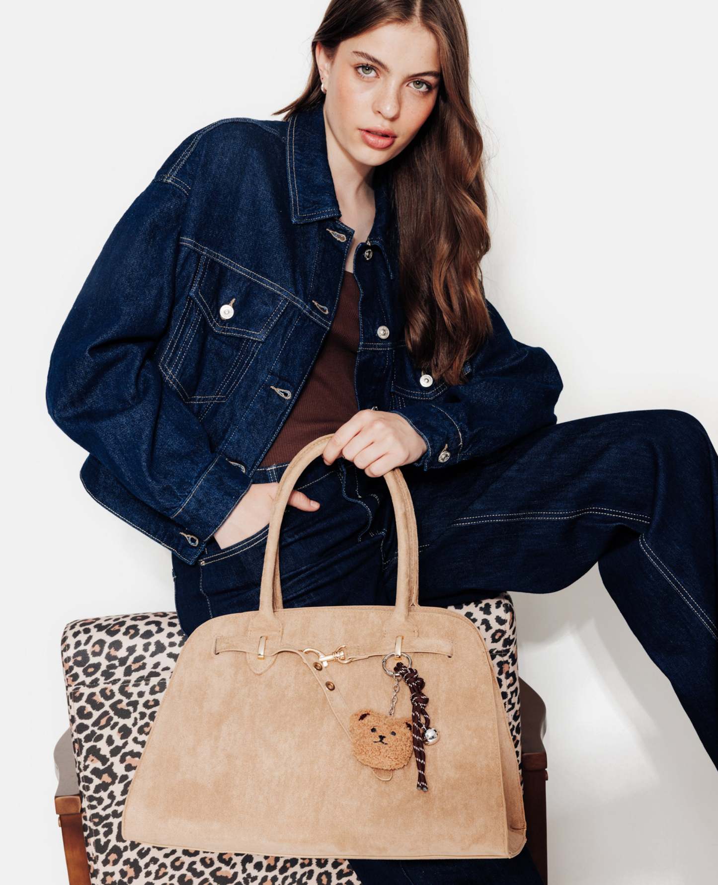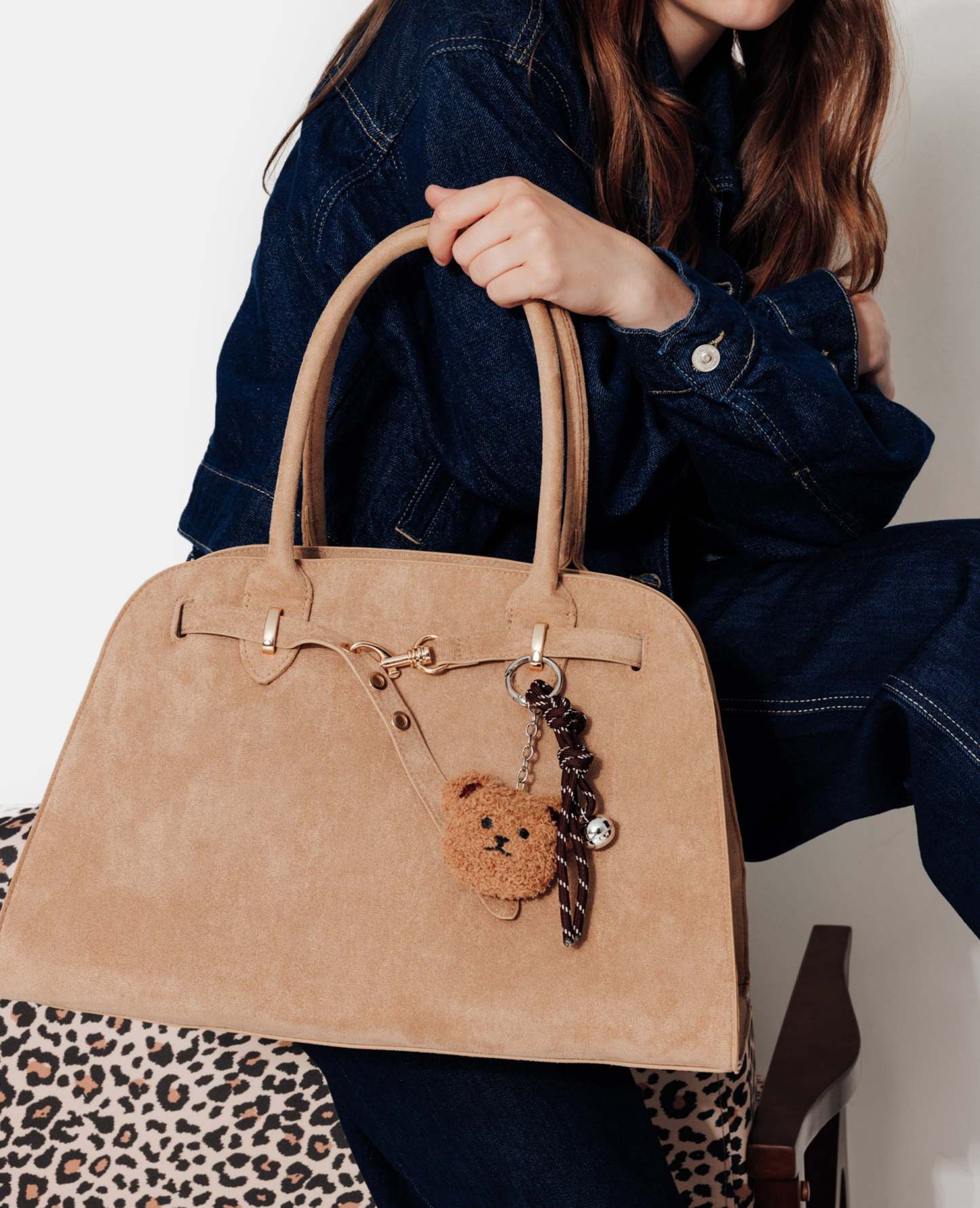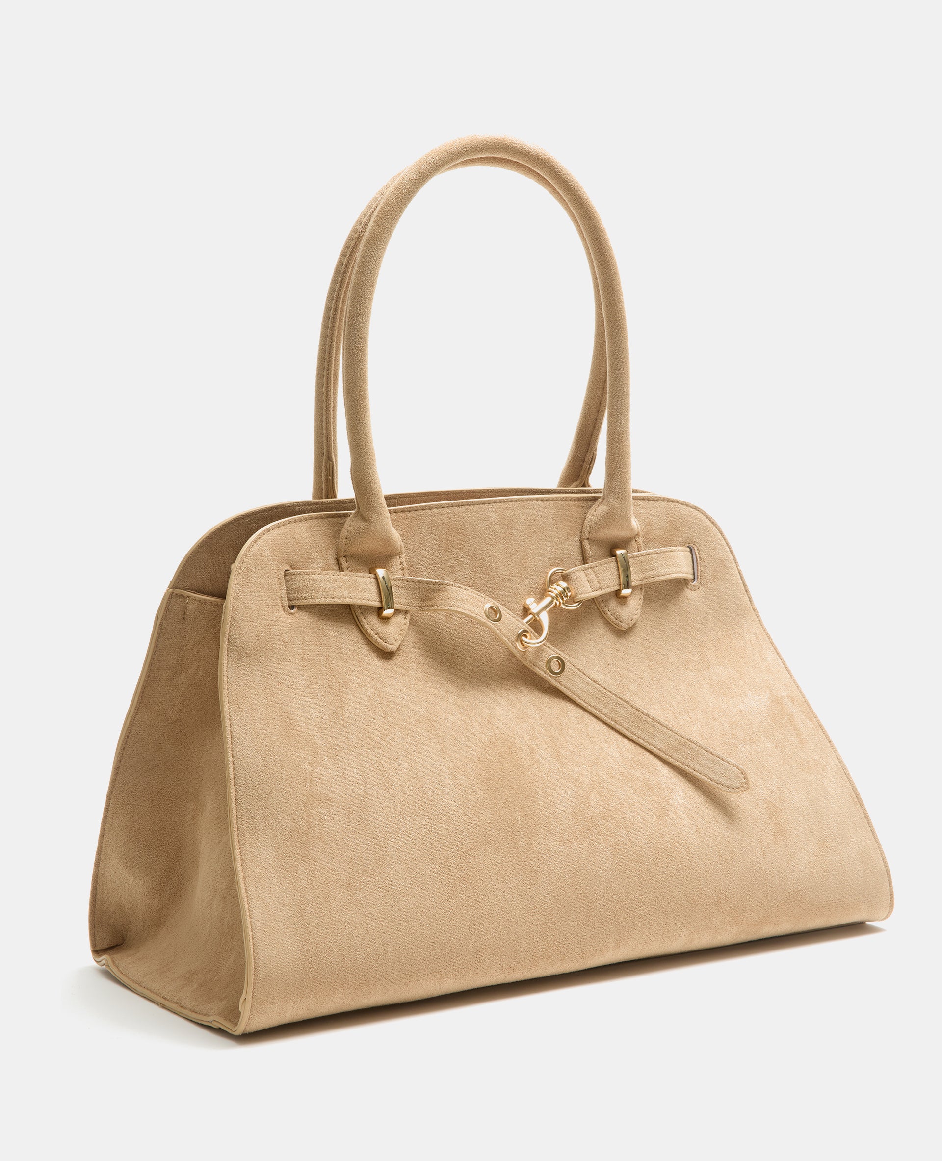 - Grand sac beige en suédine.