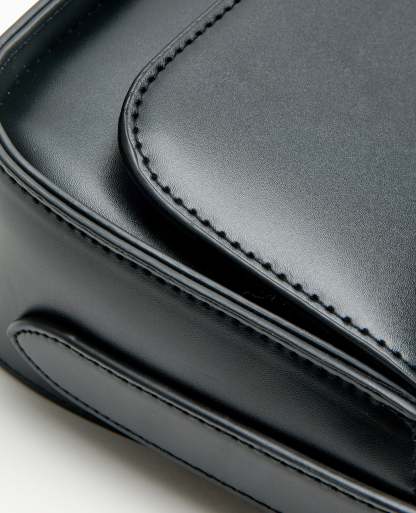 - Sac baguette noir en matière synthétique effet cuir lisse.