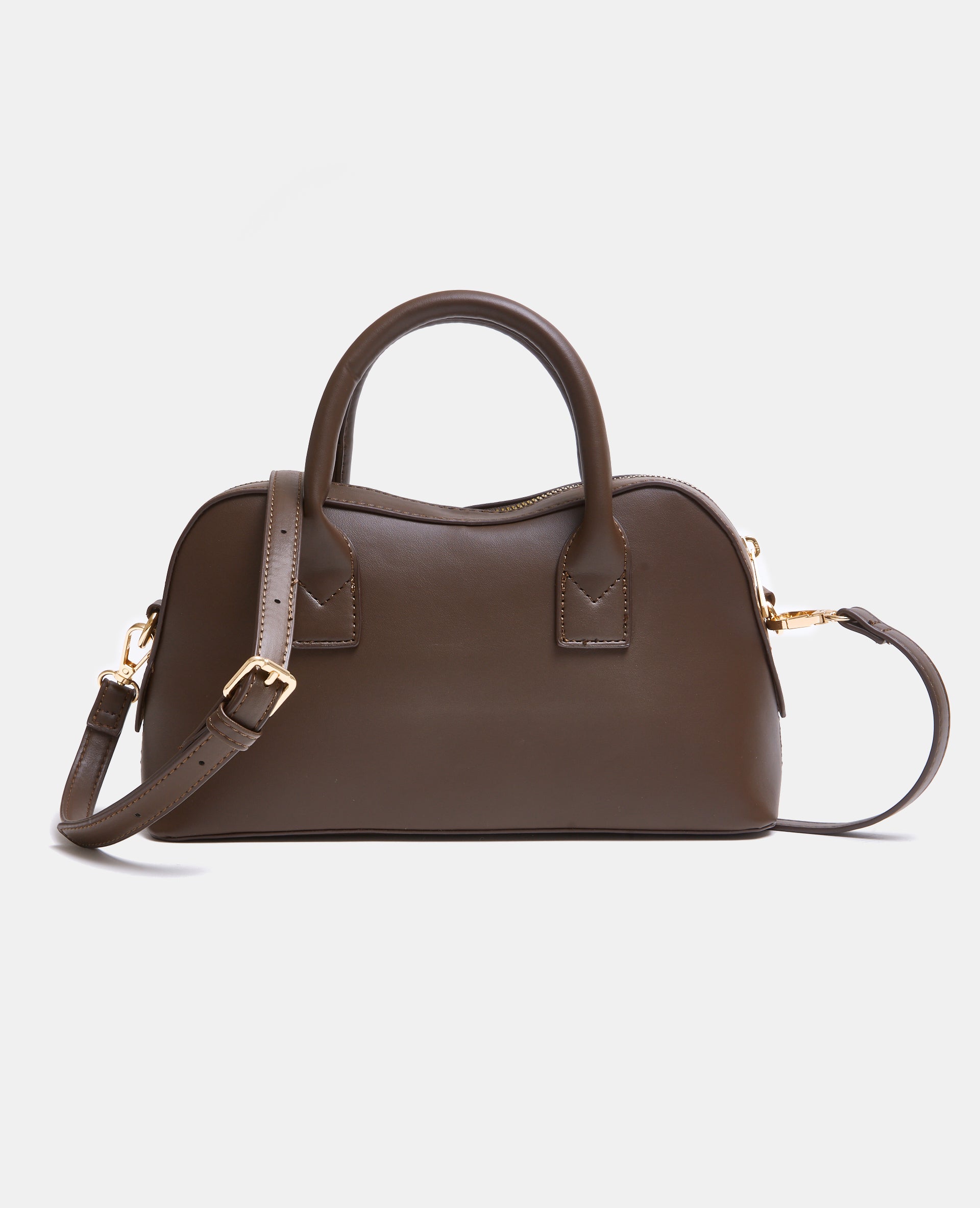 - Sac boxy marron en matière synthétique effet cuir lisse.