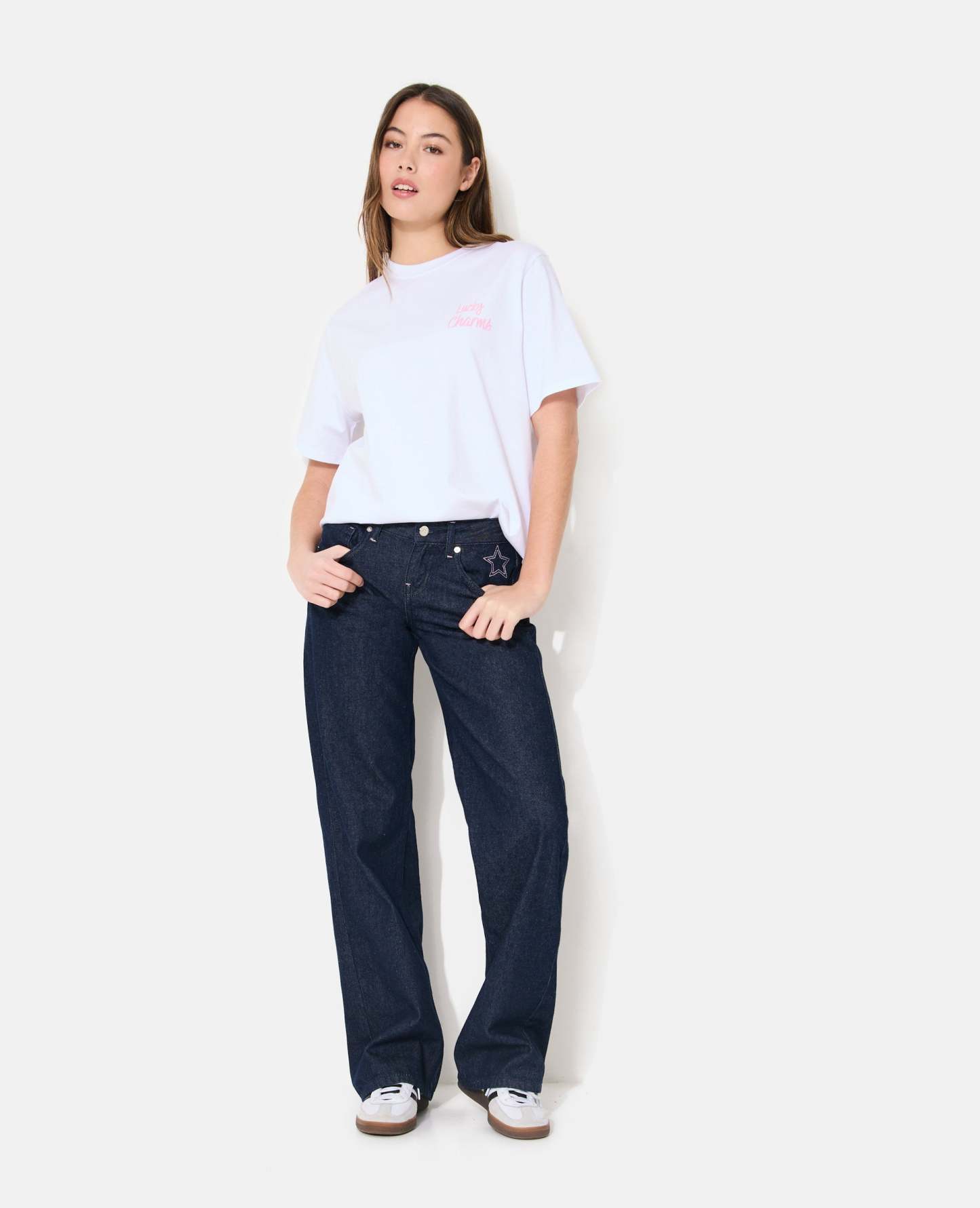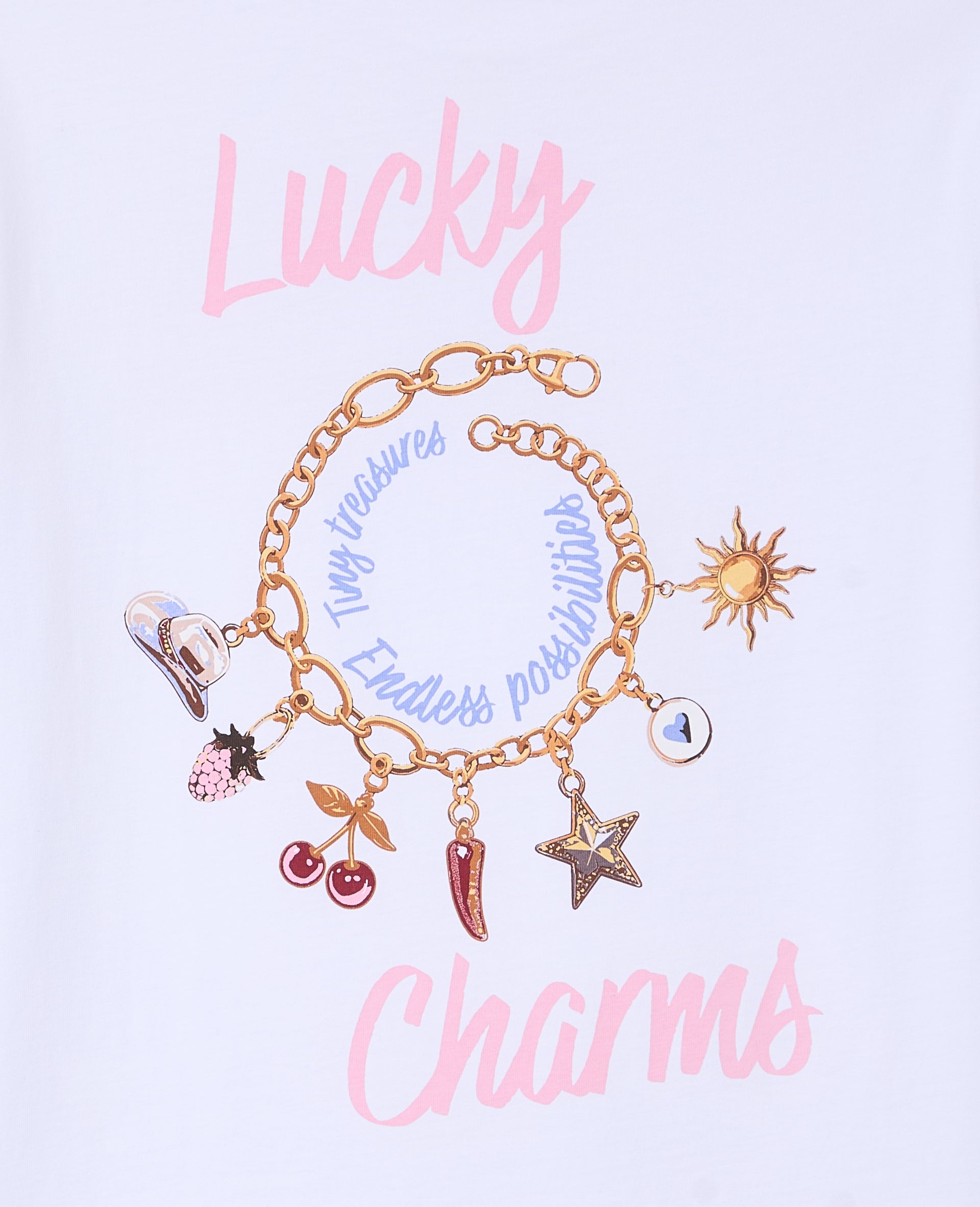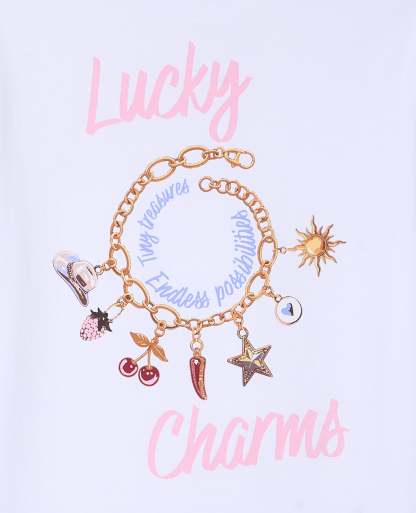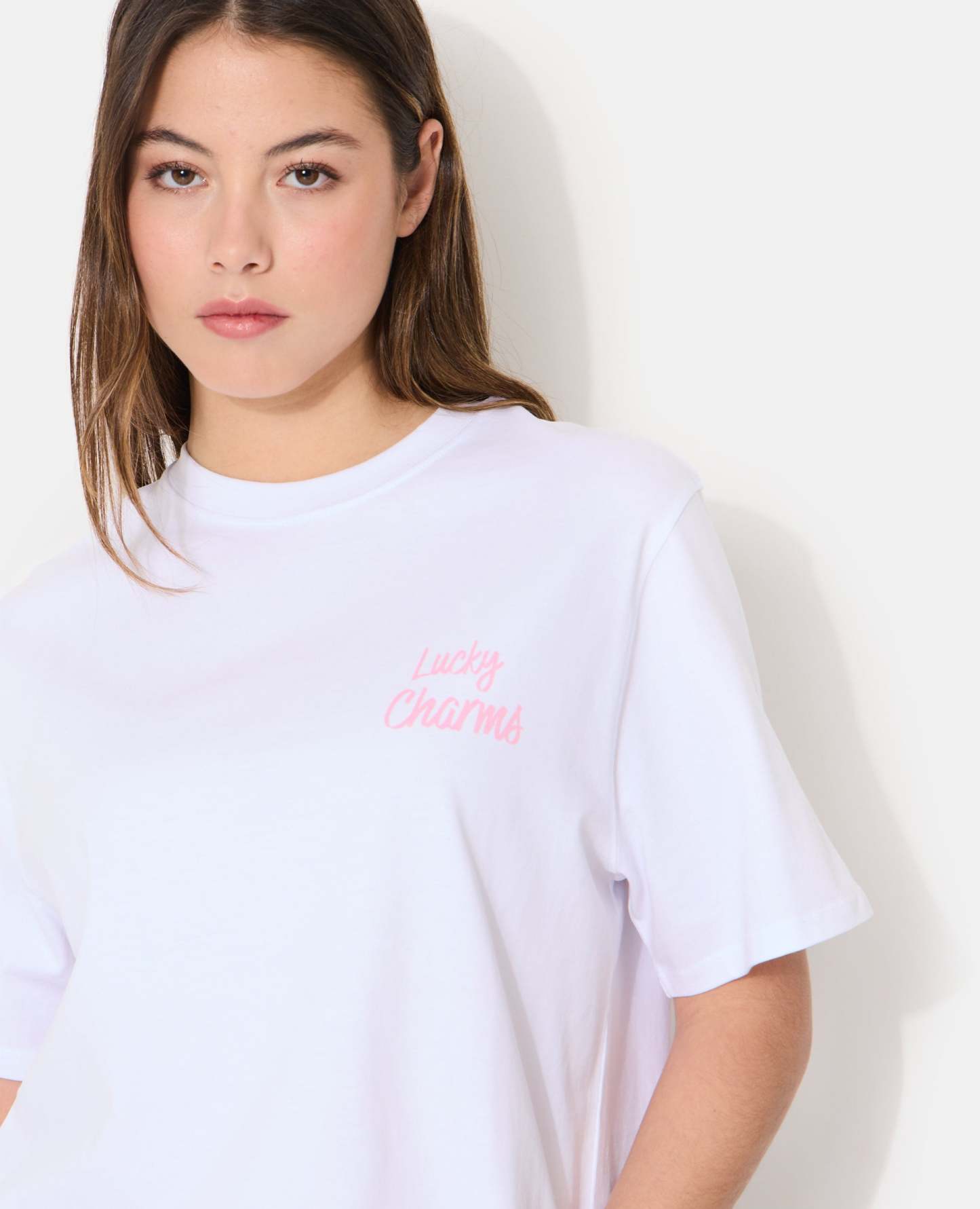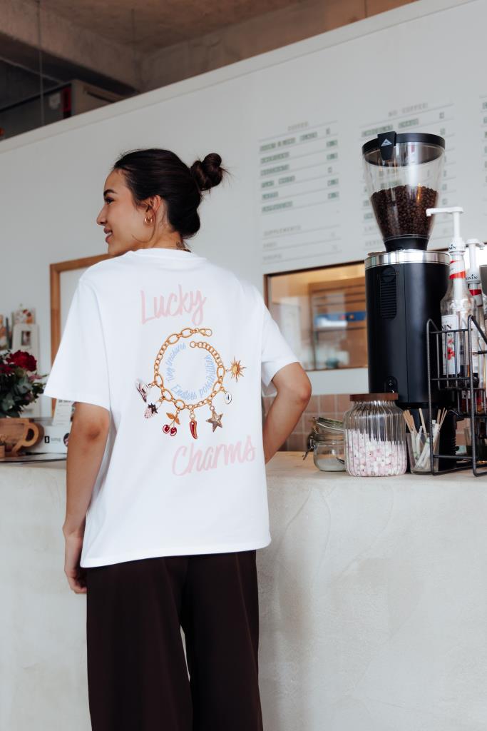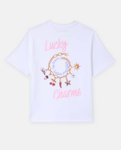 - T-shirt oversize blanc avec print LUCKY CHARMS sur poitrine et dos.