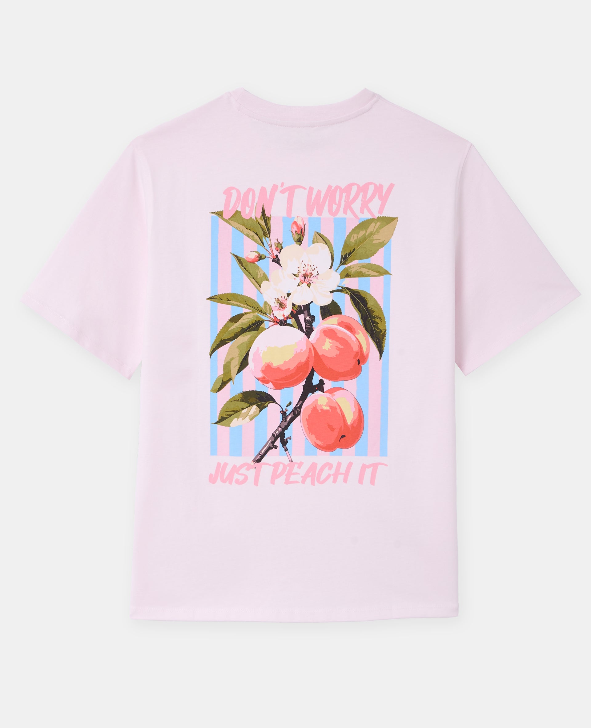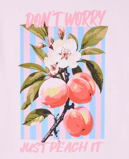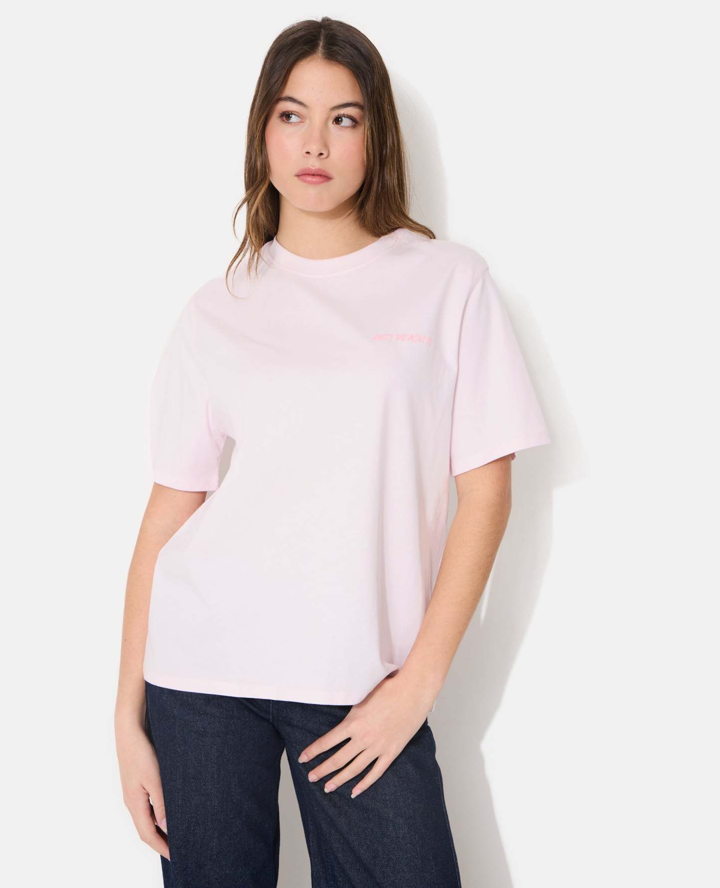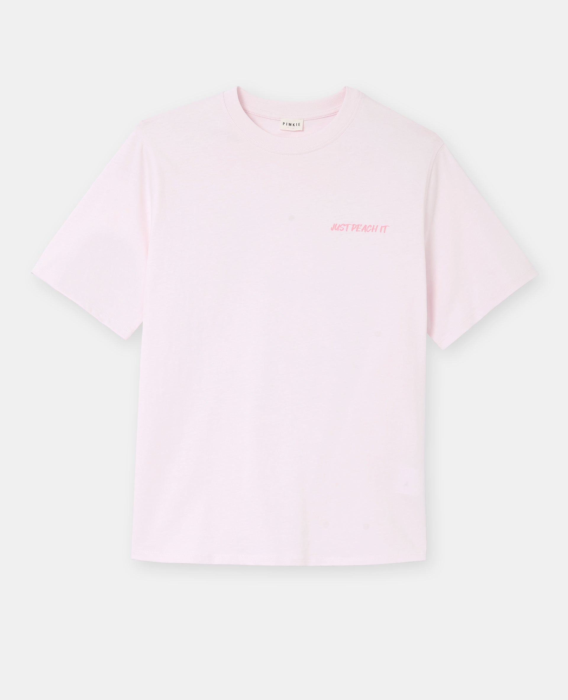 - T-shirt oversize rose pâle avec print JUST PEACH IT sur poitrine et dos.