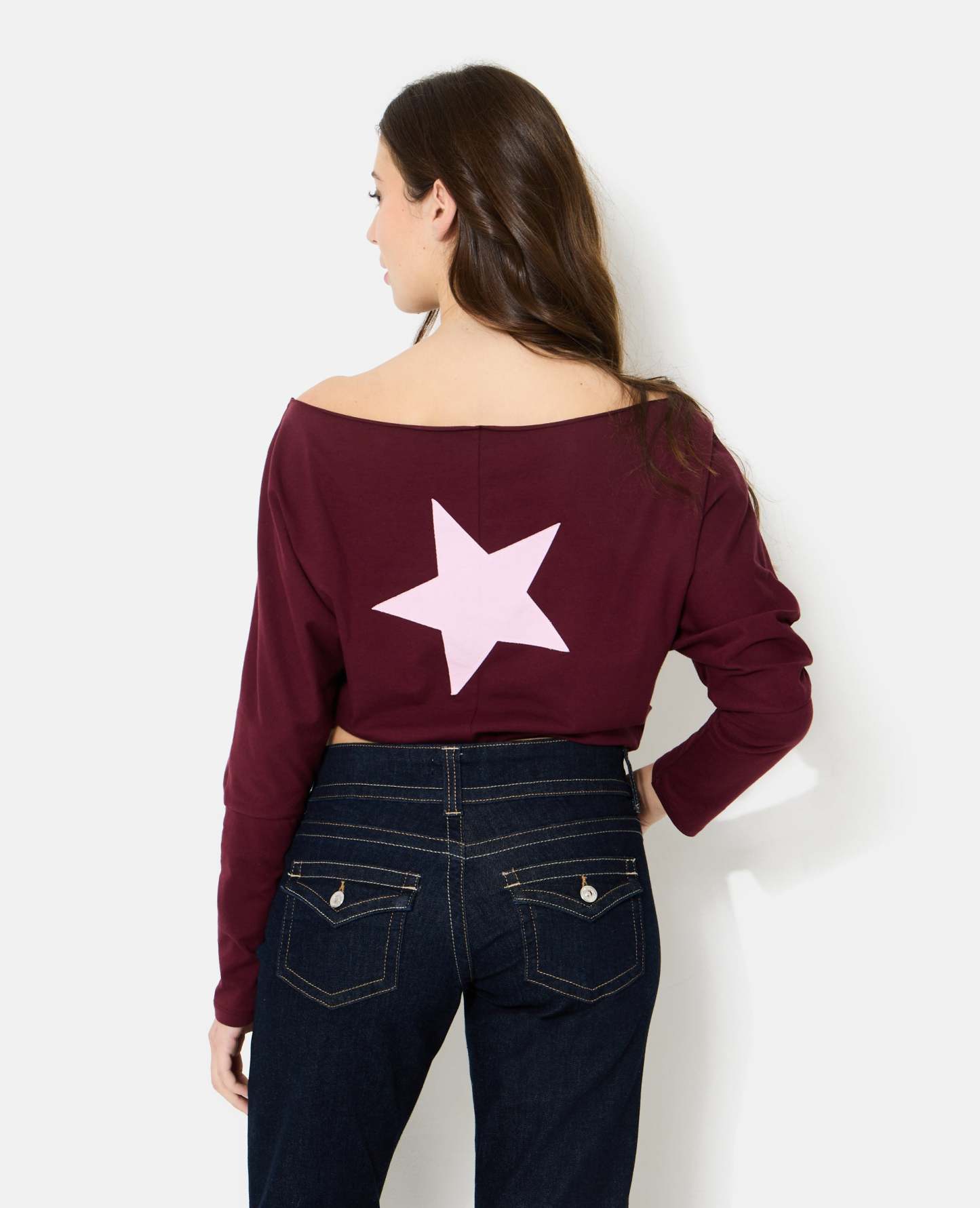 - Top bordeaux avec étoile contrastée rose pâle dans le dos.