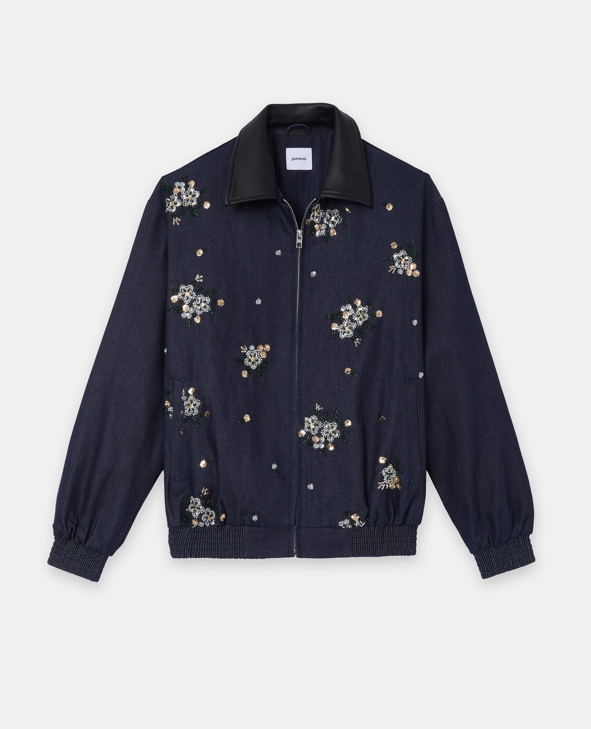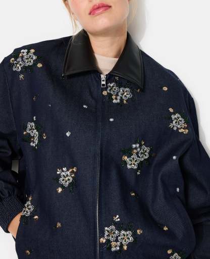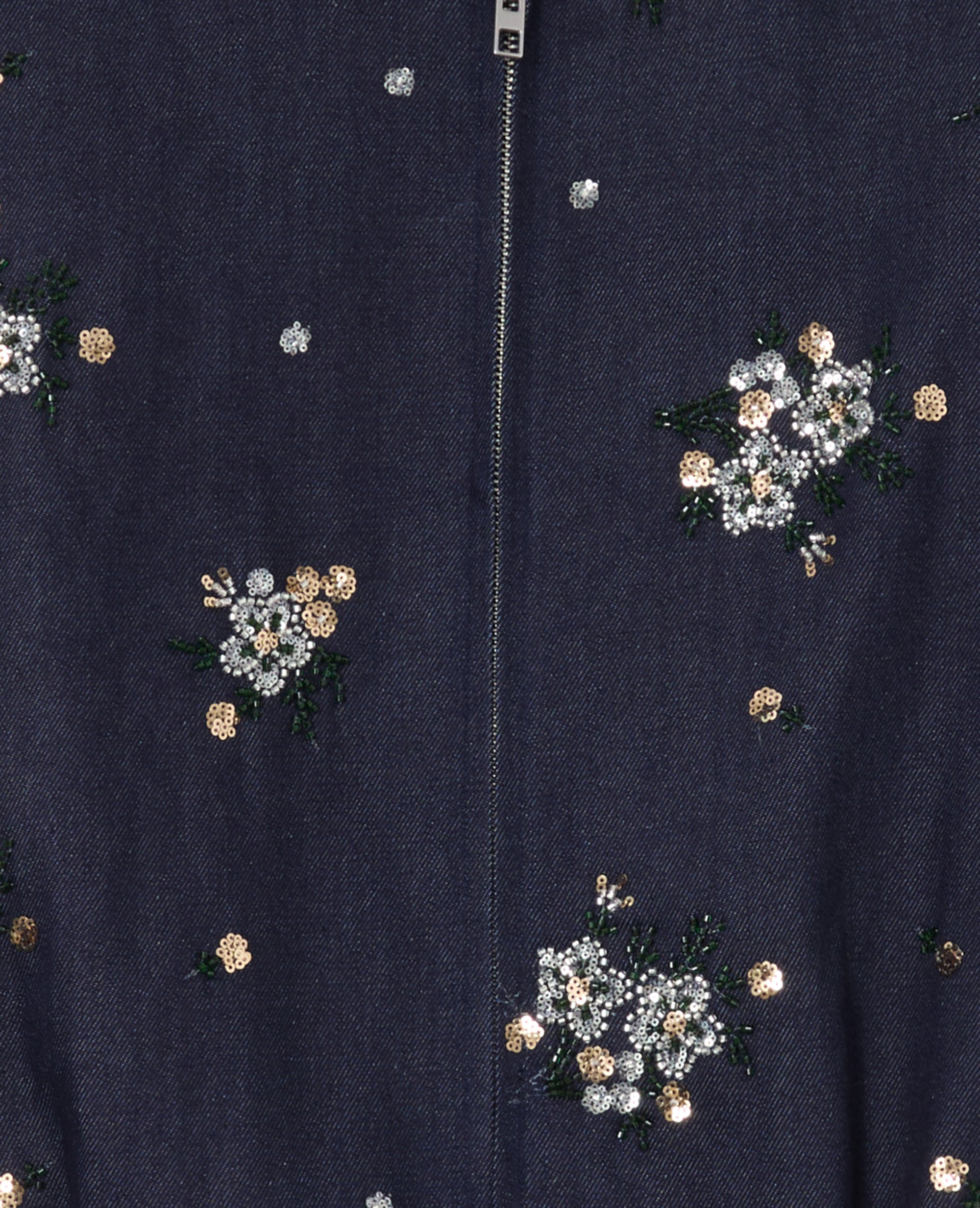 - Fleurs en sequins cousues en all over devant.