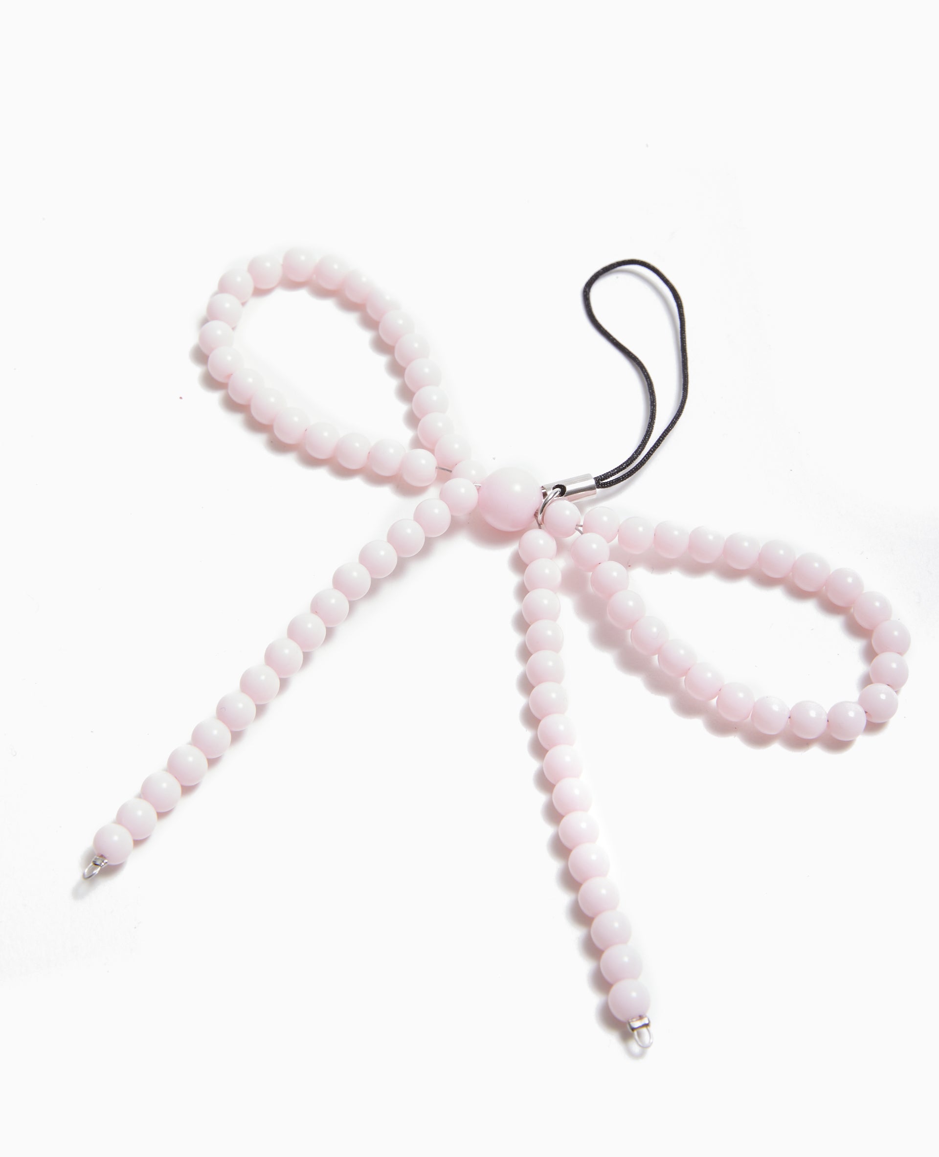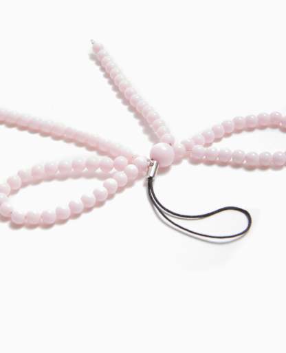 - Bijou de téléphone forme nœud en perles rose pâle.